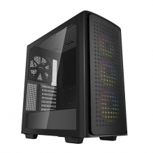 El chasis de media torre DeepCool CK560 ofrece una experiencia de construccion de PC optimizada con gran compatibilidad y un alto rendimiento de flujo de aire gracias a cuatro potentes ventiladores preinstalados y una amplia ventilacion en todo el chasis.